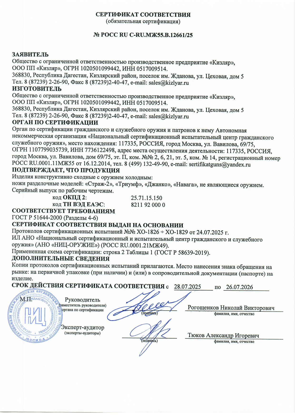 Knife Strazh - the GuardianСтраж - the sophisticated modern assault knife that is suitable for both: tactical purposes as well as for everyday carrying.